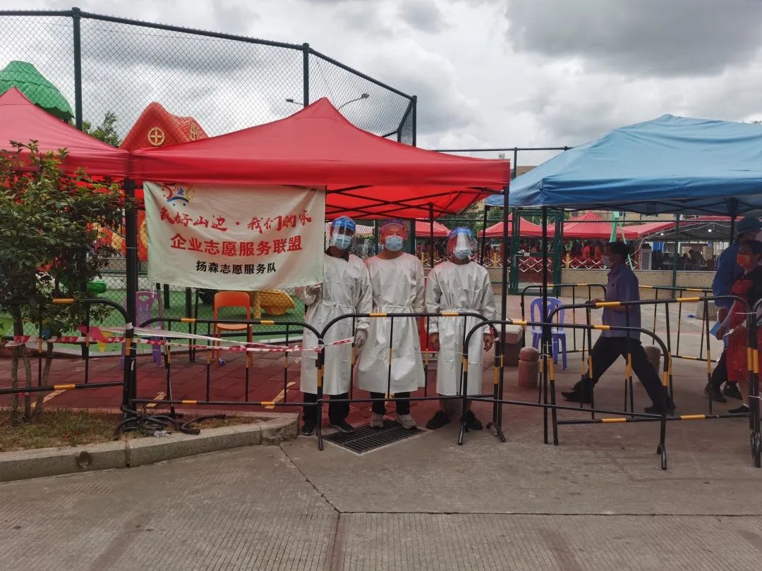 2022年8月16日-2022年8月19日,海滄區東孚鎮3輪全員核酸檢測,揚森數控黨員志願服務隊,每天10-15人不等全天輪班,累計60人次,支援東孚街道辦核酸檢測點信息錄入、秩序維護,提醒居民打開健康碼、保持“壹米線”,幫助老弱病殘居民等工作。