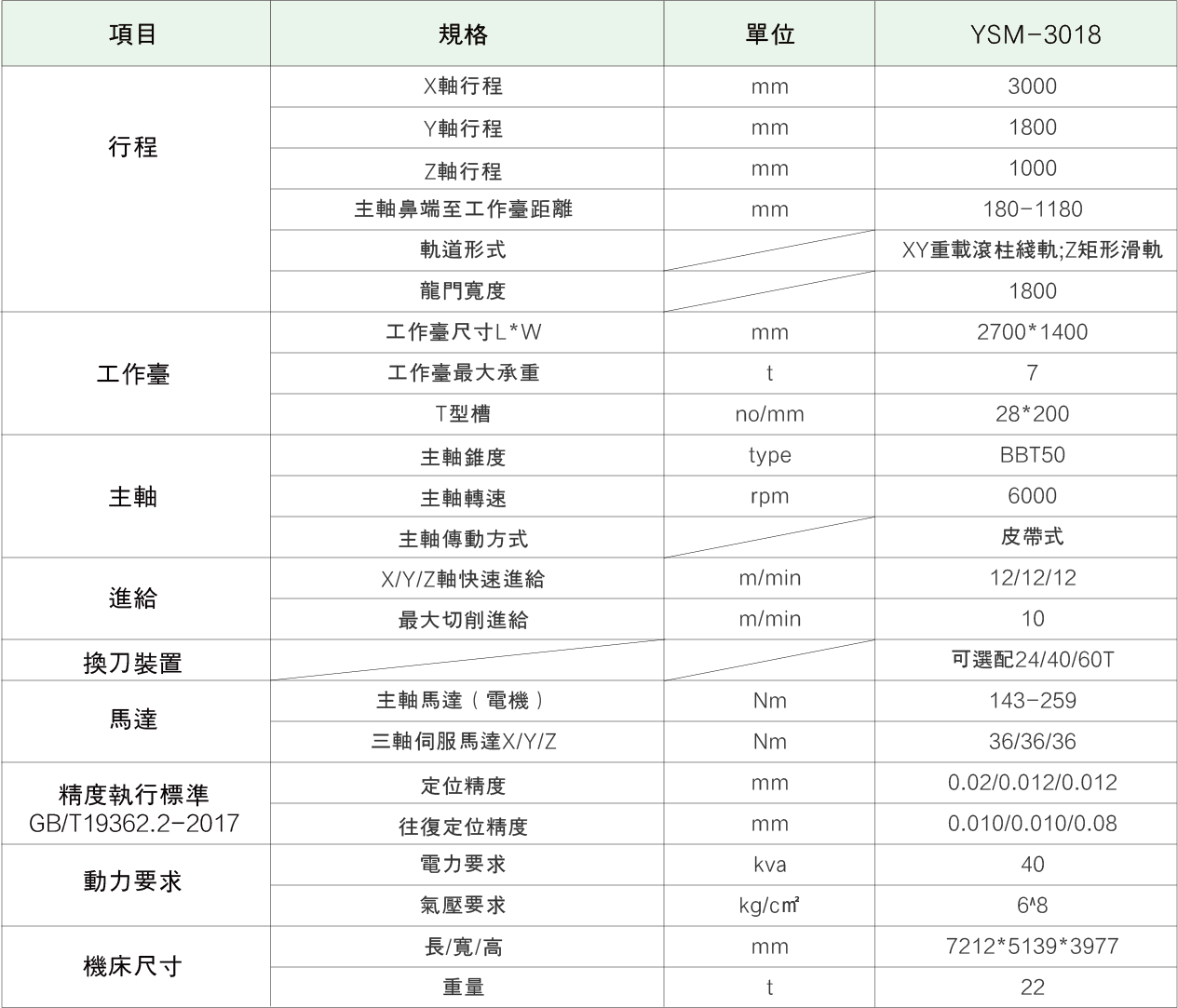 YSM-3018 龍門式數控加工中心主要結構及技術特點