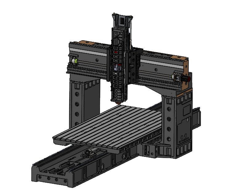 1.一體式鑄造立柱結構,搭配厚實的立柱截面尺寸,有效連結橫梁與底座之剛性傳遞,大幅提升YZ軸切削剛性。
