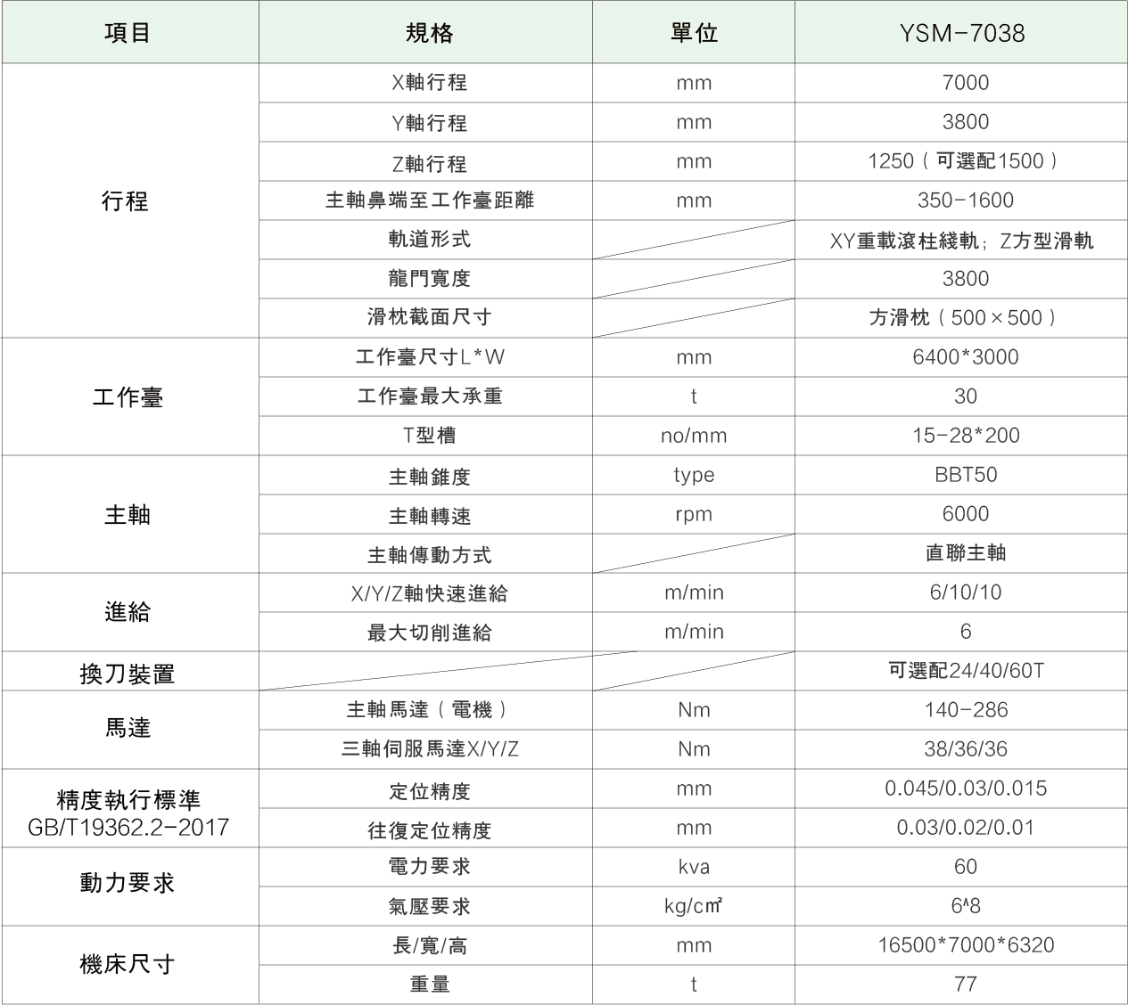 YSM-7038龙门式数控加工中心主要结构及技术特点
