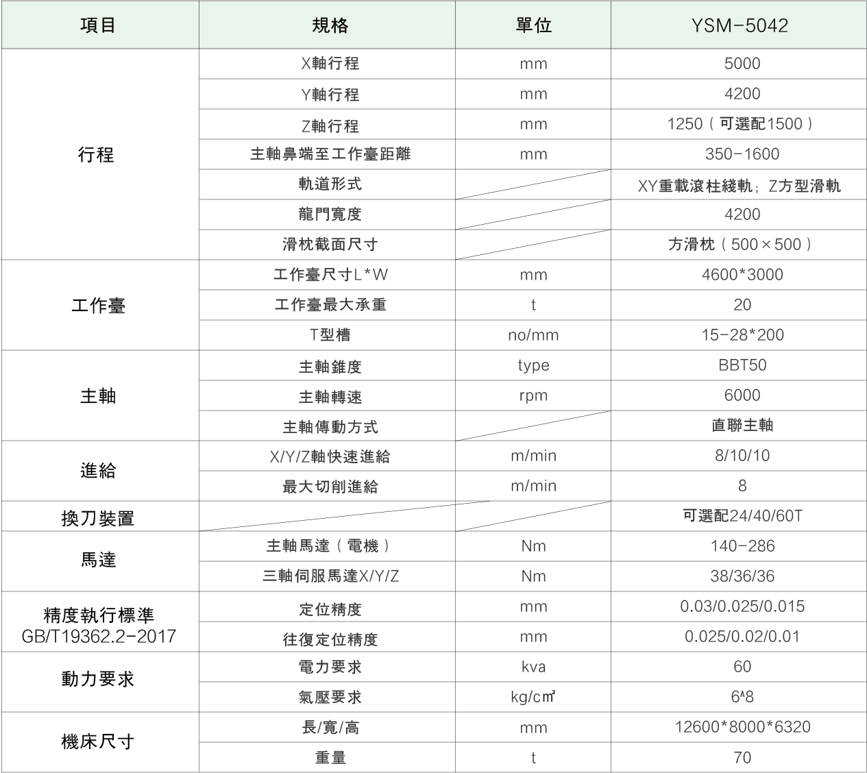 主軸采用22/26KW大扭矩交流伺服電機驅動,主軸變速采用自動兩段高低檔變速箱。變速箱潤滑油溫采用獨立油冷裝置控製;主軸帶有自動拉刀裝置,液壓松開、碟簧拉緊,松、拉刀檢測,安全可靠;主軸采用BBT50高剛性主軸,超強切削力;